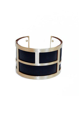 Our Black and Gold Cuff Bangle features a faux leather detail pattern with a gold metallic exterior. It is perfect to finish any outfit!