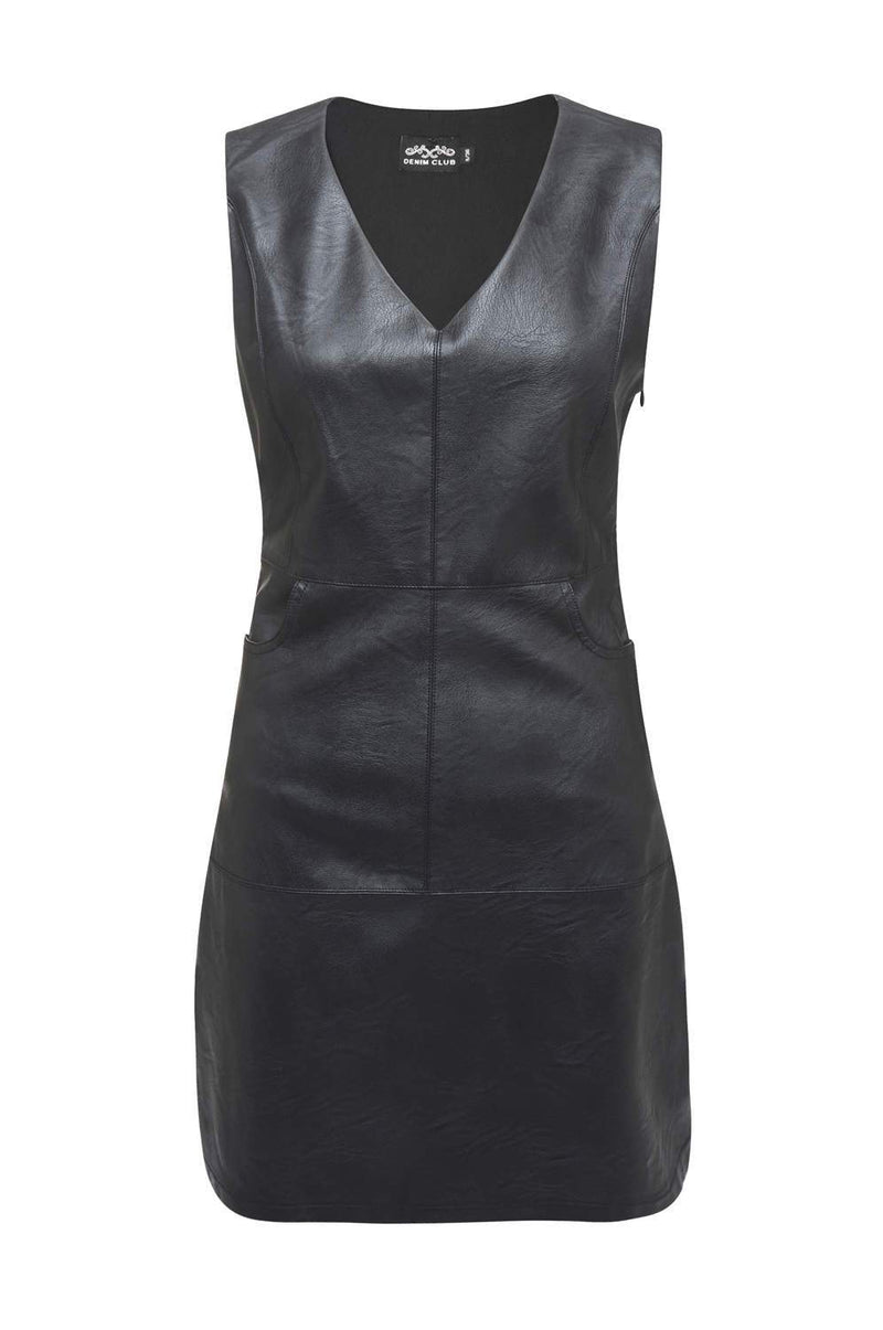 Ooze with style this season in our black faux leather mini shift dress. This sleevless style is perfect for any occasion and a must have for any girls wardrobe! Just pair with some statement heels and a cuff for a look all your friends will envy!