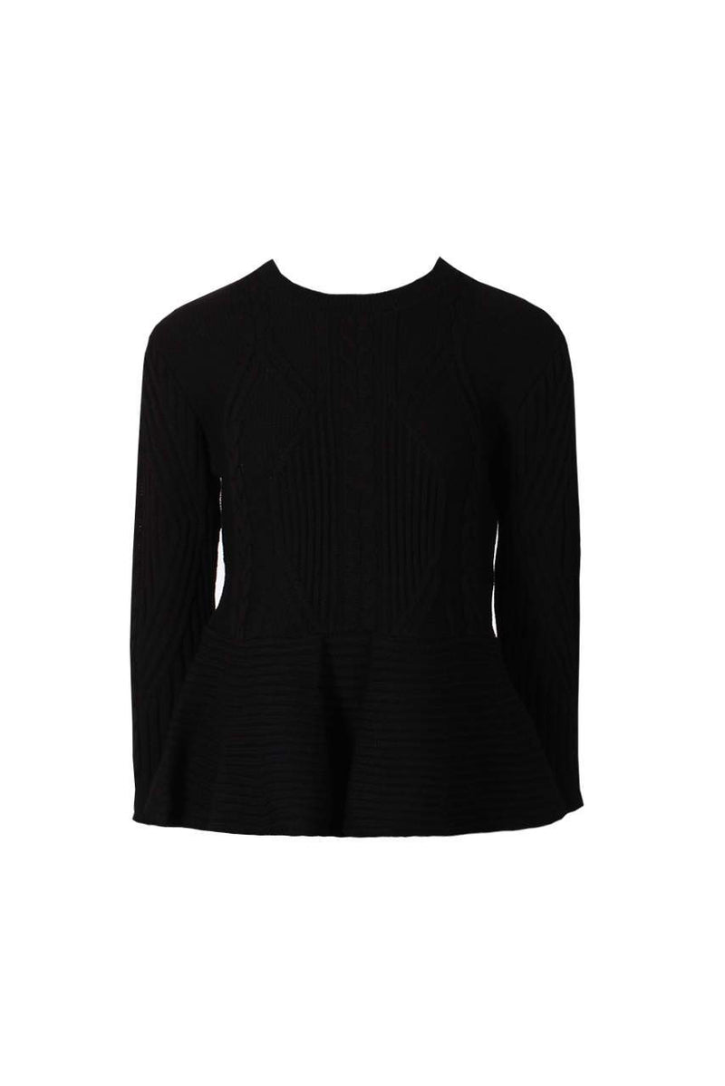 This is our black knitted jumper. Featuring long sleeves and a flared hem, perfect for day to day wear teamed with a pair of skinny jeans.