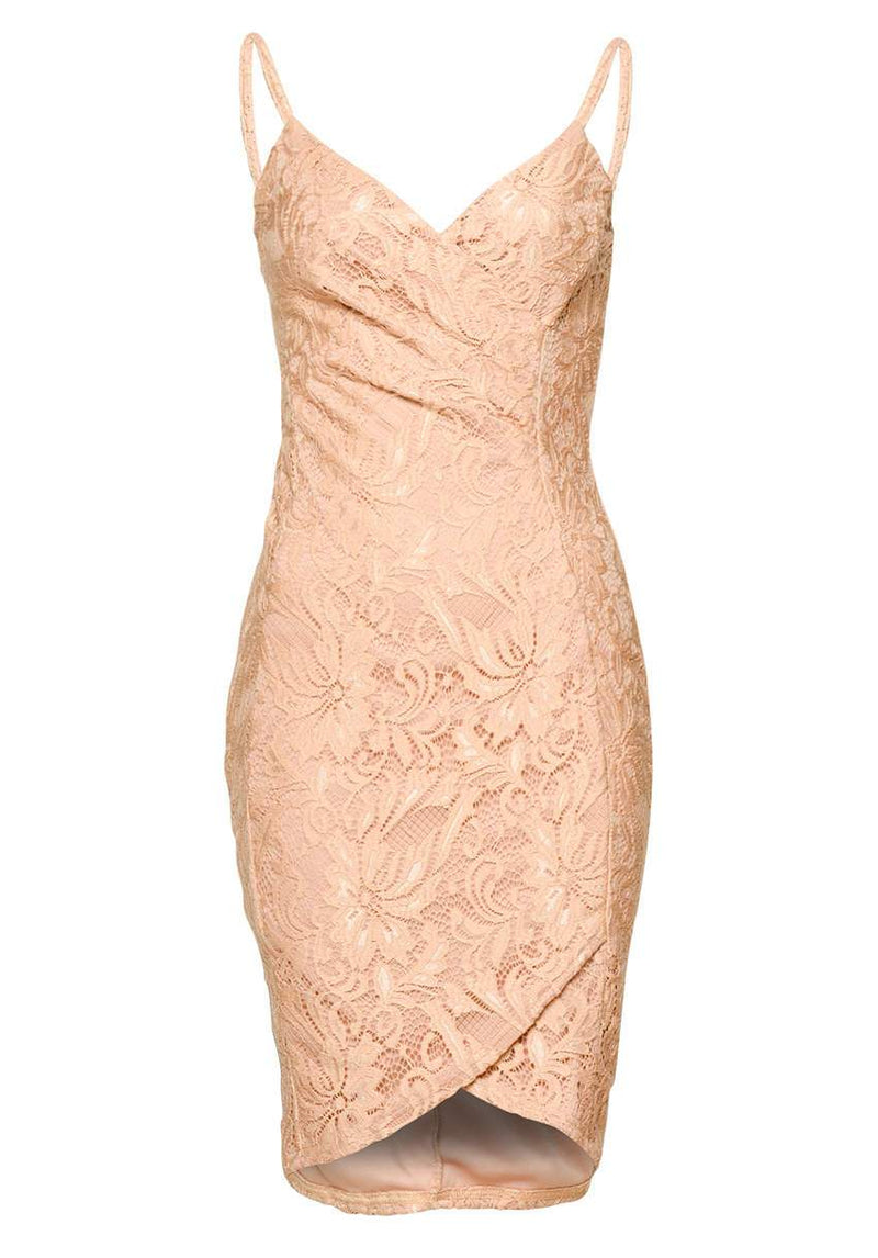 Blush Bodycon Lace Wrap Dress