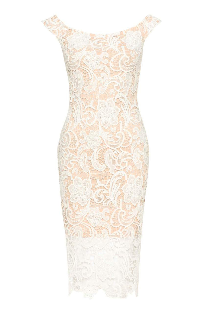 This cream and nude crochet bardot dress can be dressed up or down, and is perfect for any occasion. Style with some skyscraper heels and your favorite bag to stand out from the crowd!