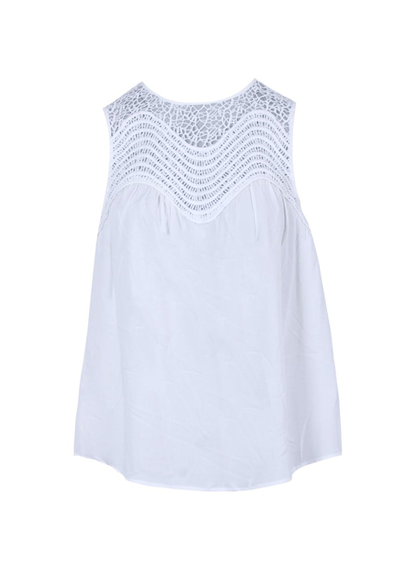This cute number is our white sleeveless top which has a beautiful crochet pattern creating a relaxed shape to the top of the garment. This top would be perfect for date night with a mini denim skirt or a pair of skinny jeans to complete your look!