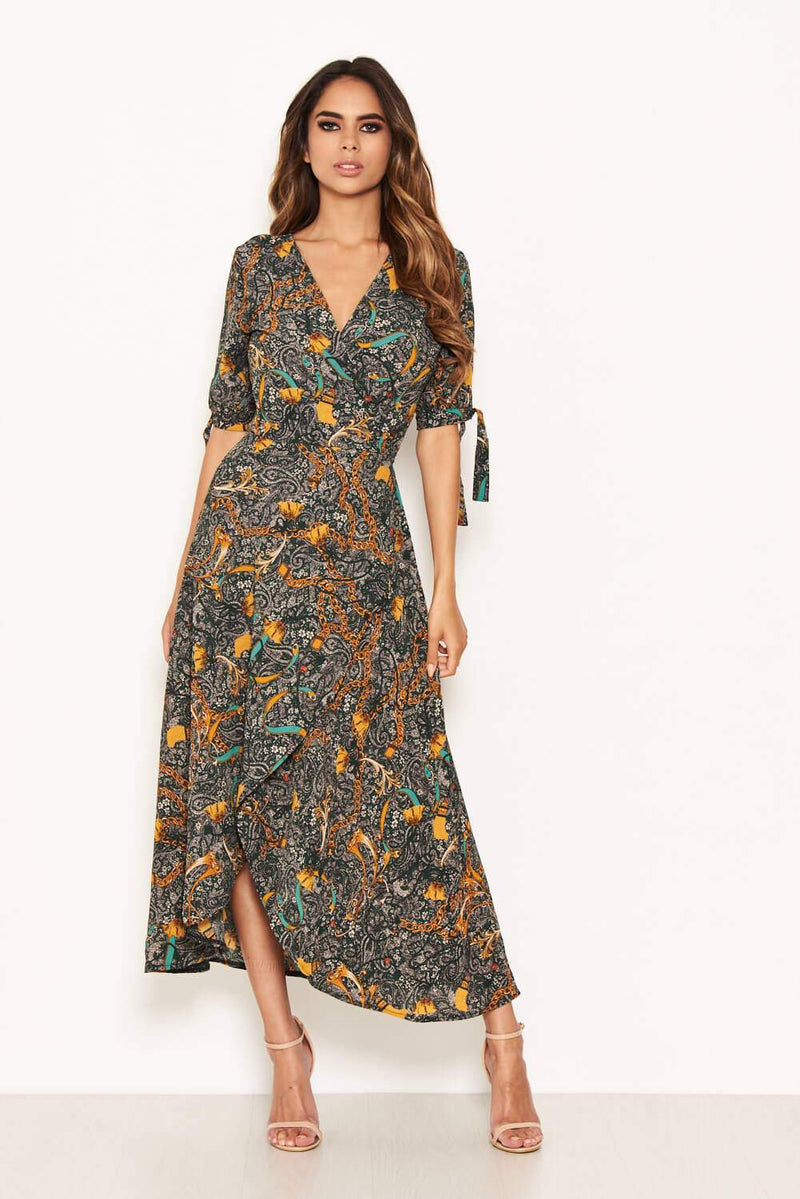 Be elegant in our 'Green Printed Wrap Dress With Tie Sleeves'. This dress is perfect for any upcoming special occasion. Simply pair with barely there heels and statement earrings to finish the look!