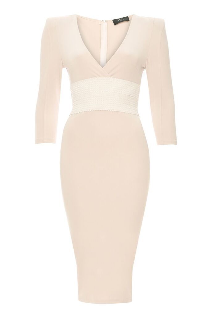 Nude Bodycon With Bandage Waist And Wrap Over Details