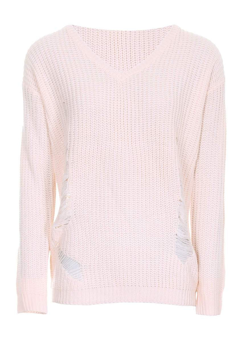 Our pink v neck cable knit laddered jumper is a perfect staple to an autumn winter wardrobe! We love how you can wear it with anything! Why not try some jeans and boots