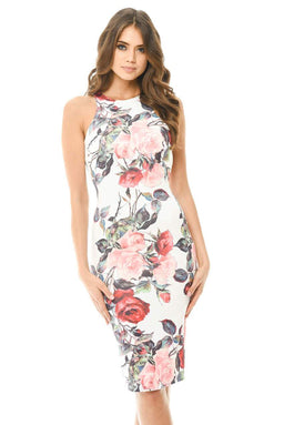 Sleeveless Bodycon Midi Dress with Rose Print
