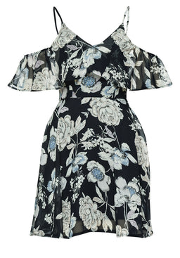 This floral frill feature cold shoulder mini swing dress is perfect for every girls wardrobe this season. The simple style can be paired with anything from a pair of glam heels to some casual ankle boots! A true catch!
