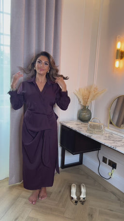 Make a statement in our Plum Side Tie Waist Wrap Midi Dress. Featuring a classic shirt collar, long cuffed sleeves, a wrap top with snap button closure, and an elasticated waist with tie side. Dress it up with heels and a cute bag or dress it down with boots for a day look.