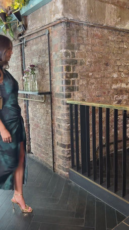 Our Teal And Black Smudge Print Halter Neck Knot Skirt Midi Dress is the perfect addition to your occasion wardrobe. Featuring a lined body, a halter neck with pleats detailing, a knot front draped midi skirt with split and a zip-up back. Pair with statement heels, a matching bag and your favourite accessories for a glam evening look!