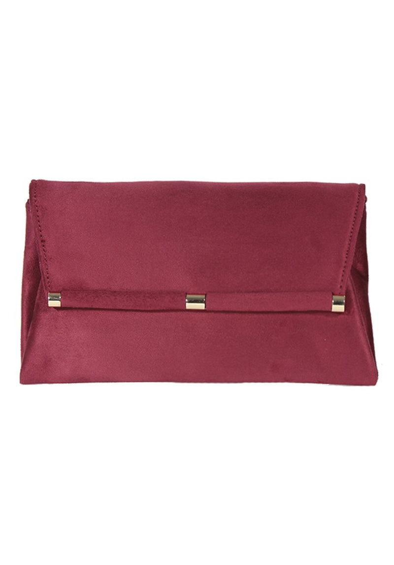Suede Burgundy Clutch with Gold Detail