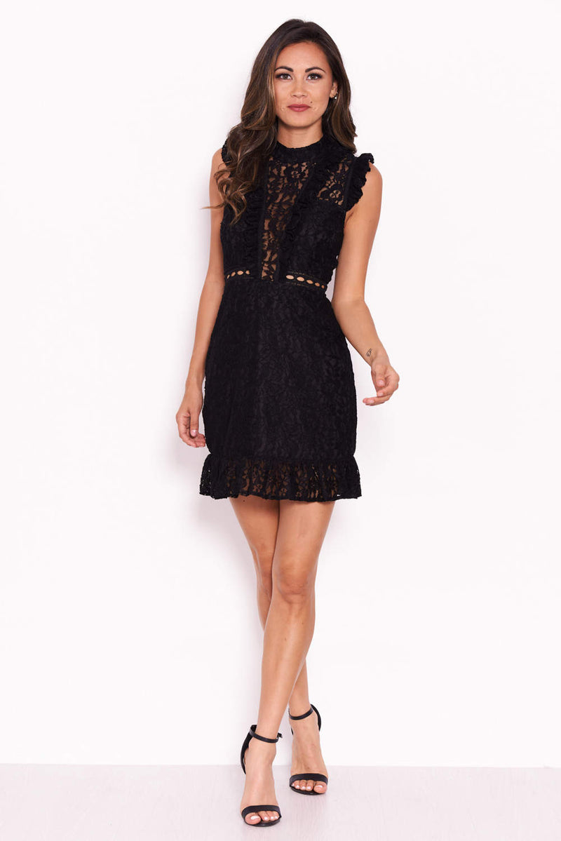 Black Lace Frill Detail Dress