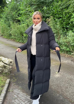 Our Black Tie Waist Quilted Longline Puffer Coat is a must-have for the winter months. Featuring quilted padding, a wrap front with snap fastening and a tie belt, a warm padded collar and pockets. Pair it with your favourite outfits to feel cosy and on -trend wherever you go.