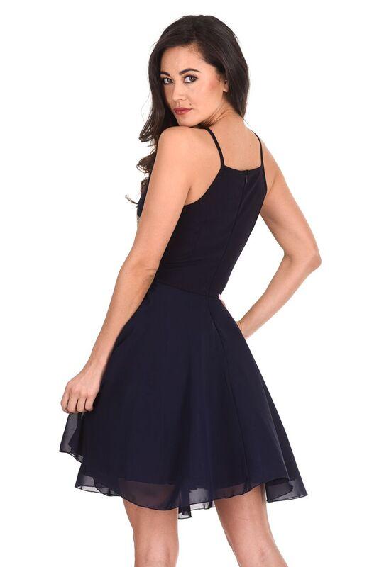 Our navy gold embroidered skater dress with mesh detailing is perfect for the summer season! Style this little number with a pair of your fave nude heels to complete the look!
