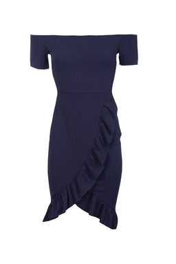 Navy Off The Shoulder Frill Detail Bodycon Dress