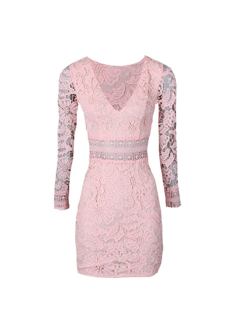 We are loving our pink crochet dress. Featuring long sleeves and a flattering v neck line. Simply style with nude heels and gold accessories for a girls night out on the town!