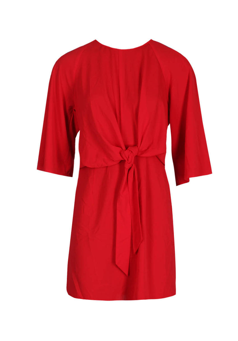 This red flared mini dress with 3/4 sleeves is a wardrobe basic this season! Featuring a tie waist, it's easy to throw on with flats or dress it up with heels and some accessories.