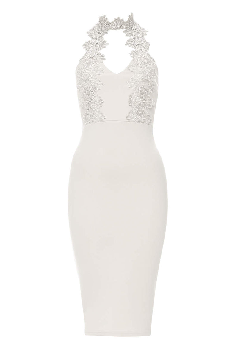 This silver halterneck choker dress with lace detail is perfect for any special occasion. Style with barely there heels to steal the show!